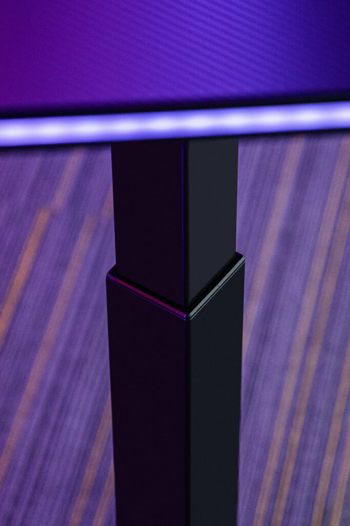 - · Internal cable routing and hidden channels for tidy wire management.