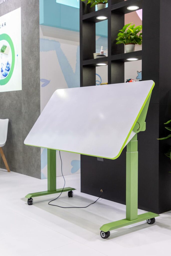 亮眼的绿黄撞色设计,让空间更具活力。桌面支持 0–90°自由翻转,既是日常书桌,也是倾斜阅读桌,还可以变身创意白板桌。