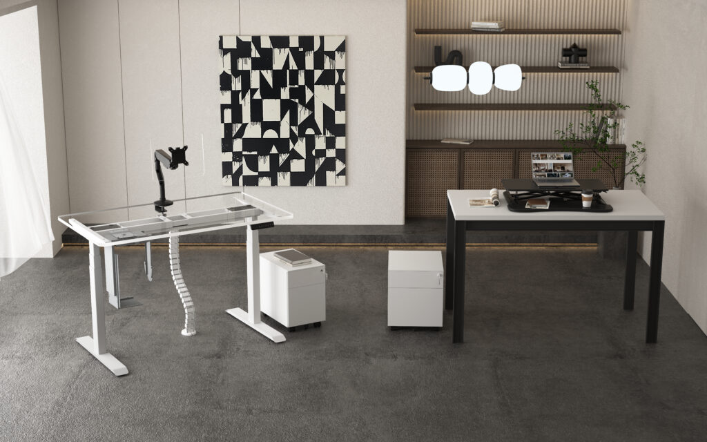 传统桌面固定不变,迫使我们长时间保持同一姿势,这会让肌肉过度紧绷或疲劳。相比之下,升降桌可让你随时根据需要在坐姿与站姿之间快速切换: