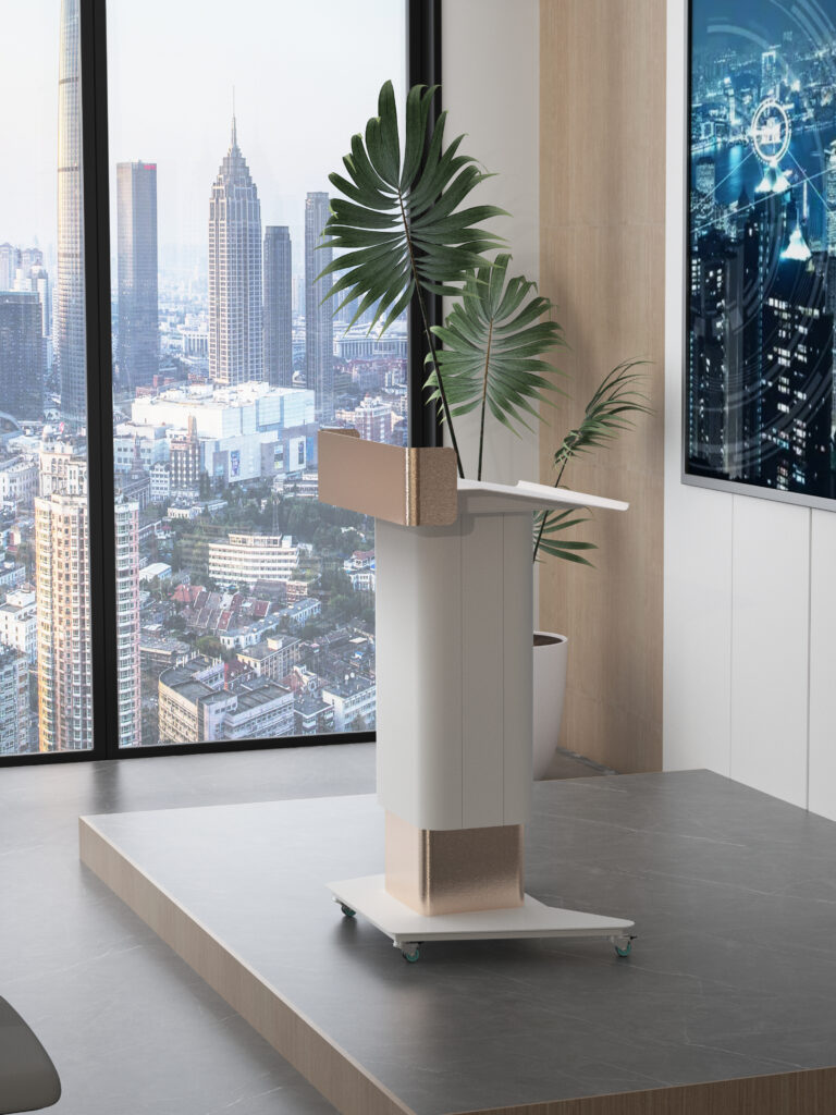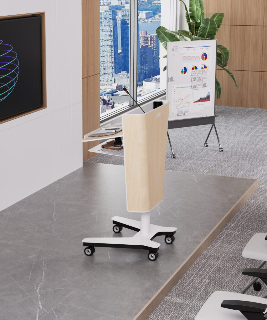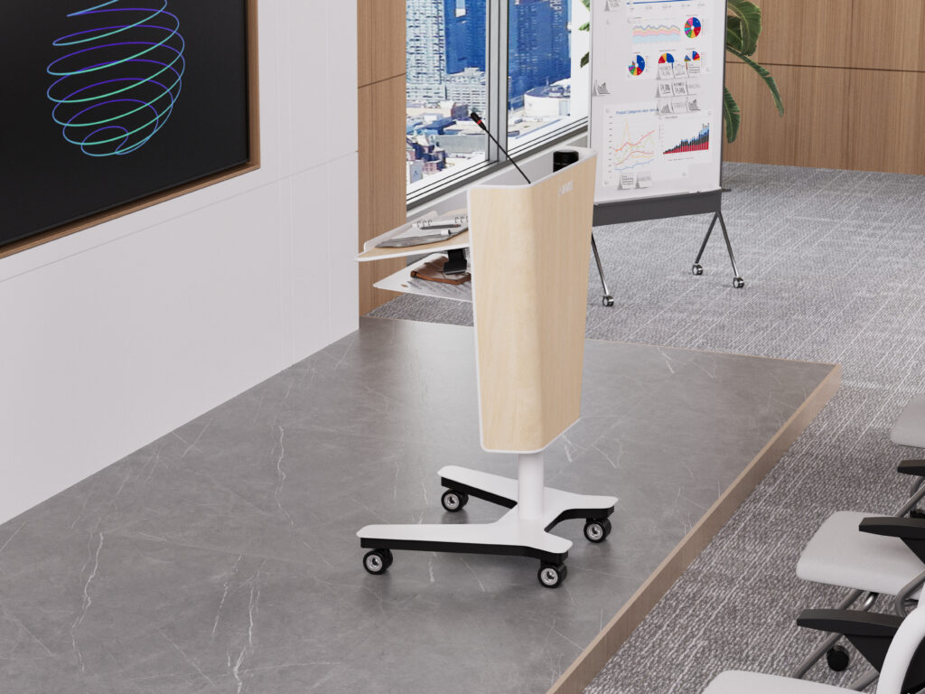 Compared with electric podiums, pneumatic podiums enable teaching, presenting, and demonstrating to break free from fixed zones and enter fully mobile environments.