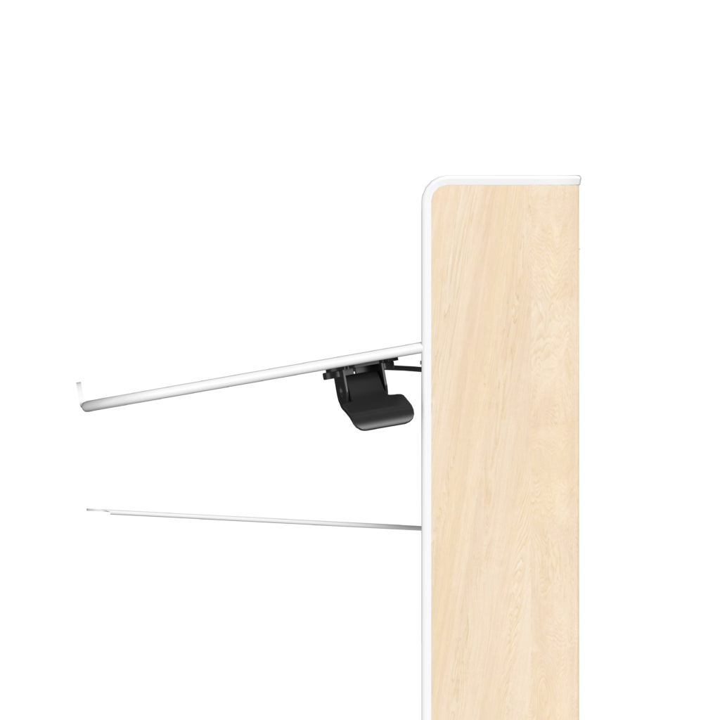 The 465×150mm desk can be equipped with a magnetic front strip to keep materials tidy and movements efficient.